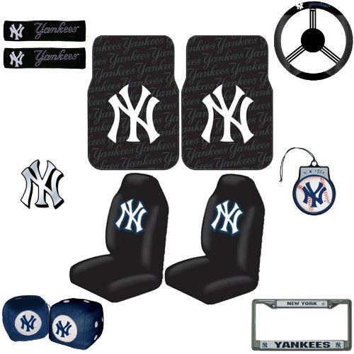 *** FLOOR MAT FEATURES *** Team logo front floormats for cars, vans, trucks and/or an SUV. Officially licensed molded-in MLB team logo floor mats with built-in textured anti-skid backing that will never come apart. Rubber floor mats are water proof so spill will not soak in and onto your vehicles' flooring. Made with state of art process that bakes in color to prevent fade or discoloration. Cleaning is a breeze with just soap and water. Mats Measure approx 27" X 17".*** SEAT COVER FEATURES *** Easy stretchable fits most high or low back bucket seats with a detachable or built-in headrest. They do not fit seats with built-in armrest or sideseat airbags. Do not install these covers on a seat that has an air bag(s) built into the seat itself. Add fun and fashion to the normal features and functions of seat covers. The seat covers adjust with tabs and buckles to fit most bucket seats and to provide a smooth, custom fit. If your seat has a headrest, you will install the seat cover over the headrest after adjusting it to your desired position.*** LICENSE PLATE FRAME FEATURES ***Show everyone who you root for with this chrome metal license plate frame! Features your favorite team's name and logo, and has pre-drilled holes for easy mounting. The chrome frame is very durable and will last for a long time!*** STEERING WHEEL COVER FEATURES ***The steering wheel cover is made of poly-suede mesh for a comfortable grip and features your favorite team's logo.*** CHROME EMBLEM FEATURES *** Graphic can be applied to a vehicle or any other hard surface. Can be removed without damaging paint or surface. UV protected.*** FUZZY CAR DICE FEATURES *** Team logo on one side and white dots for numbers on the other five sides. Includes white cord for hanging.*** SEAT BELT SHOULDER PAD FEATURES *** Kick back and relax in the comfort of your own vehicle while your team spirit shines with these shoulder pads!